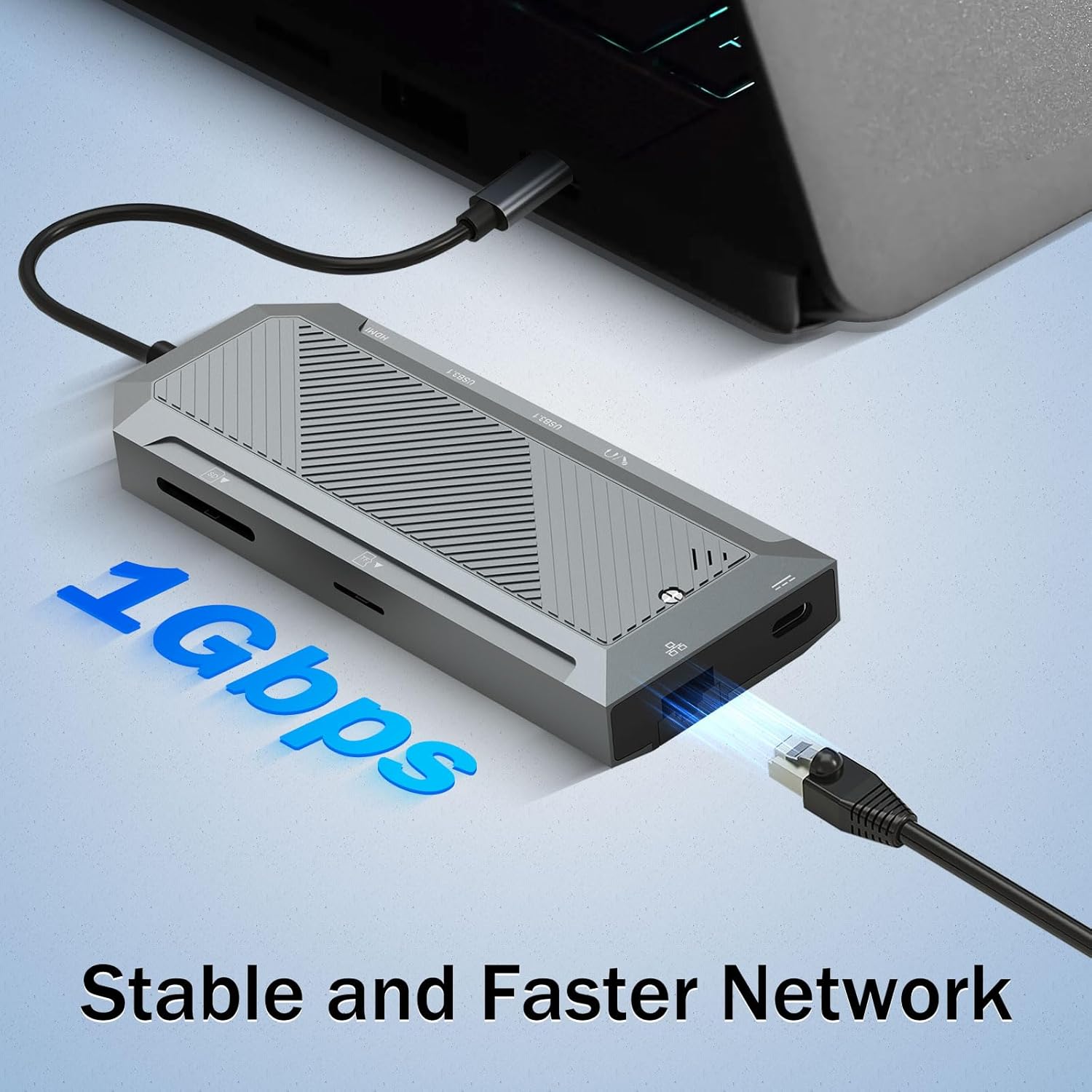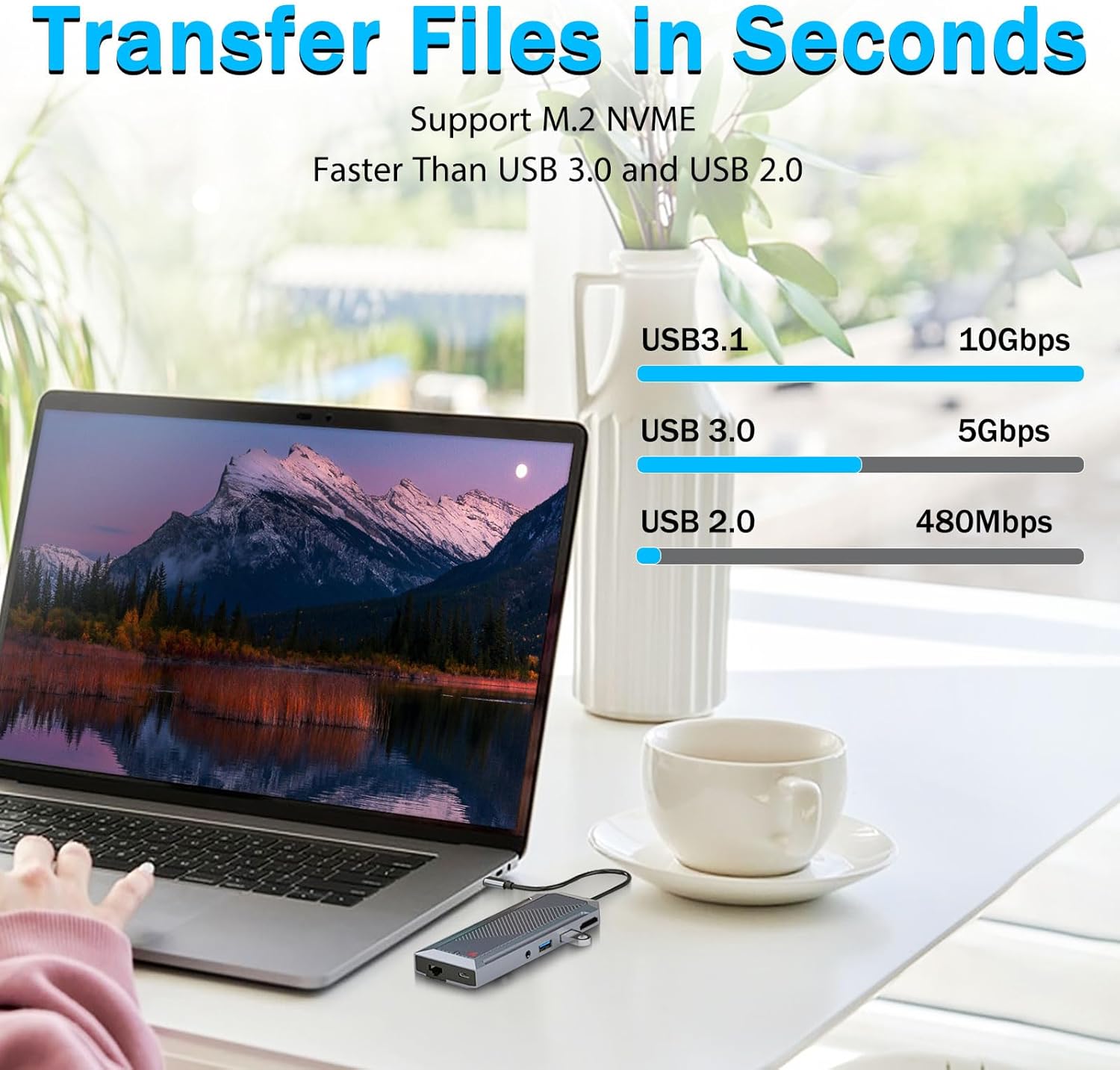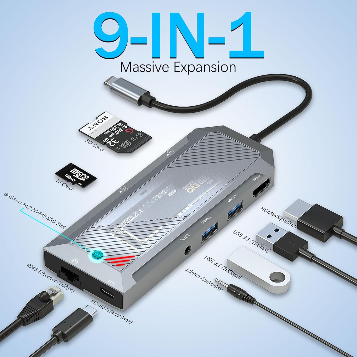 M.2 NVMe 4K 60Hz HDMI Splitter үчүн SSD корпусу менен 9-да 1 USB-C хабы – Эң сонун туташуу жана жогорку ылдамдыктагы сактагычты кеңейтүү