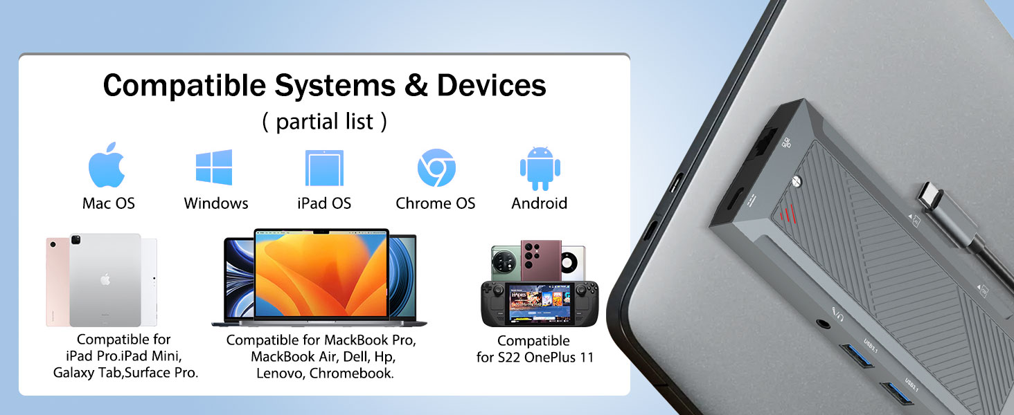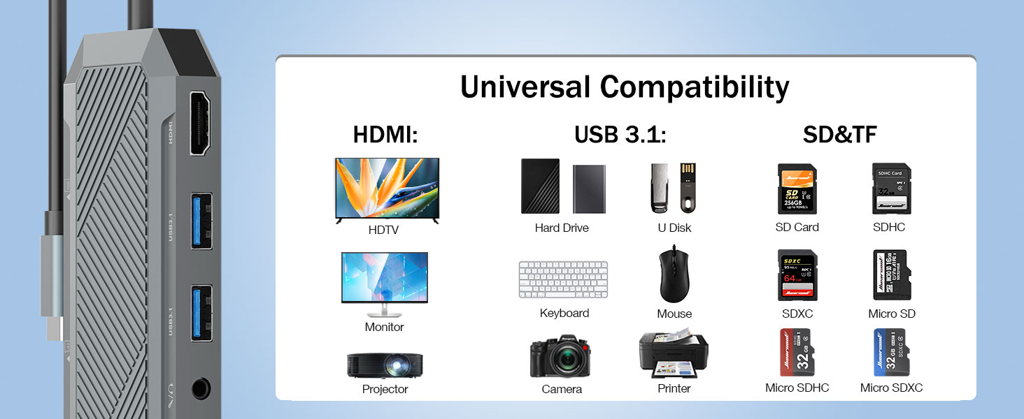 Заманбап ноутбуктар жана планшеттер барган сайын күчтүү жана көчмө болуп баратат, бирок көптөгөн түзмөктөр ичке конструкциялардын пайдасына маанилүү портторду курмандыкка чалышат. Натыйжада, профессионалдар, жаратуучулар жана күнүмдүк колдонуучулар көбүнчө өндүрүмдүүлүгүн төмөндөтпөстөн түзмөк мүмкүнчүлүктөрүн кеңейтүүчү ар тараптуу туташуу чечимин талап кылышат. M.2 NVMe 4K 60Hz HDMI Splitter үчүн SSD корпусу менен 9-да 1 USB-C хабы жогорку ылдамдыктагы маалыматтарды өткөрүп берүүнү, өтө тунук дисплей чыгарууну жана интеграцияланган SSD сактагыч функцияларын айкалыштырган бардыгы бир-бир чечимди камсыз кылат.