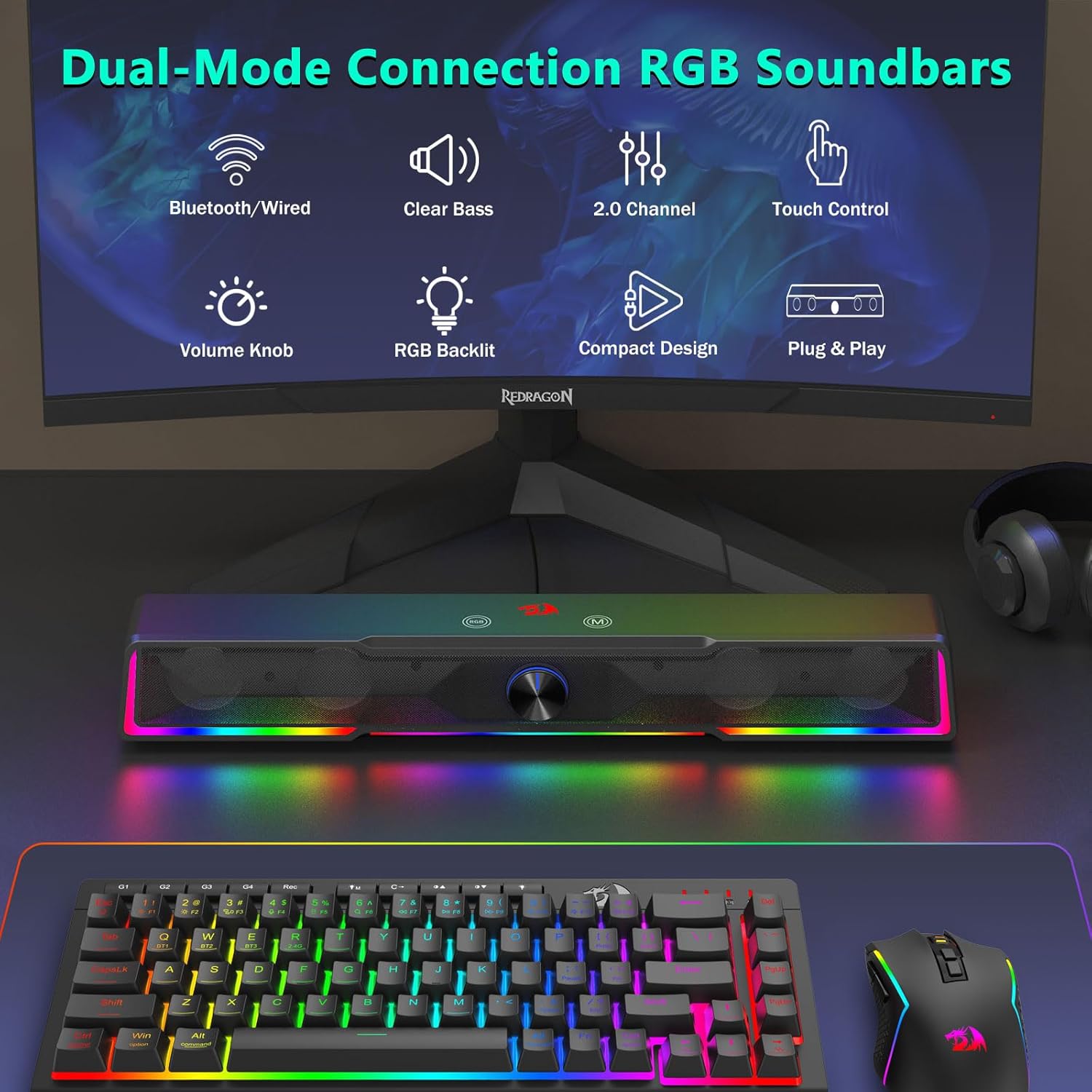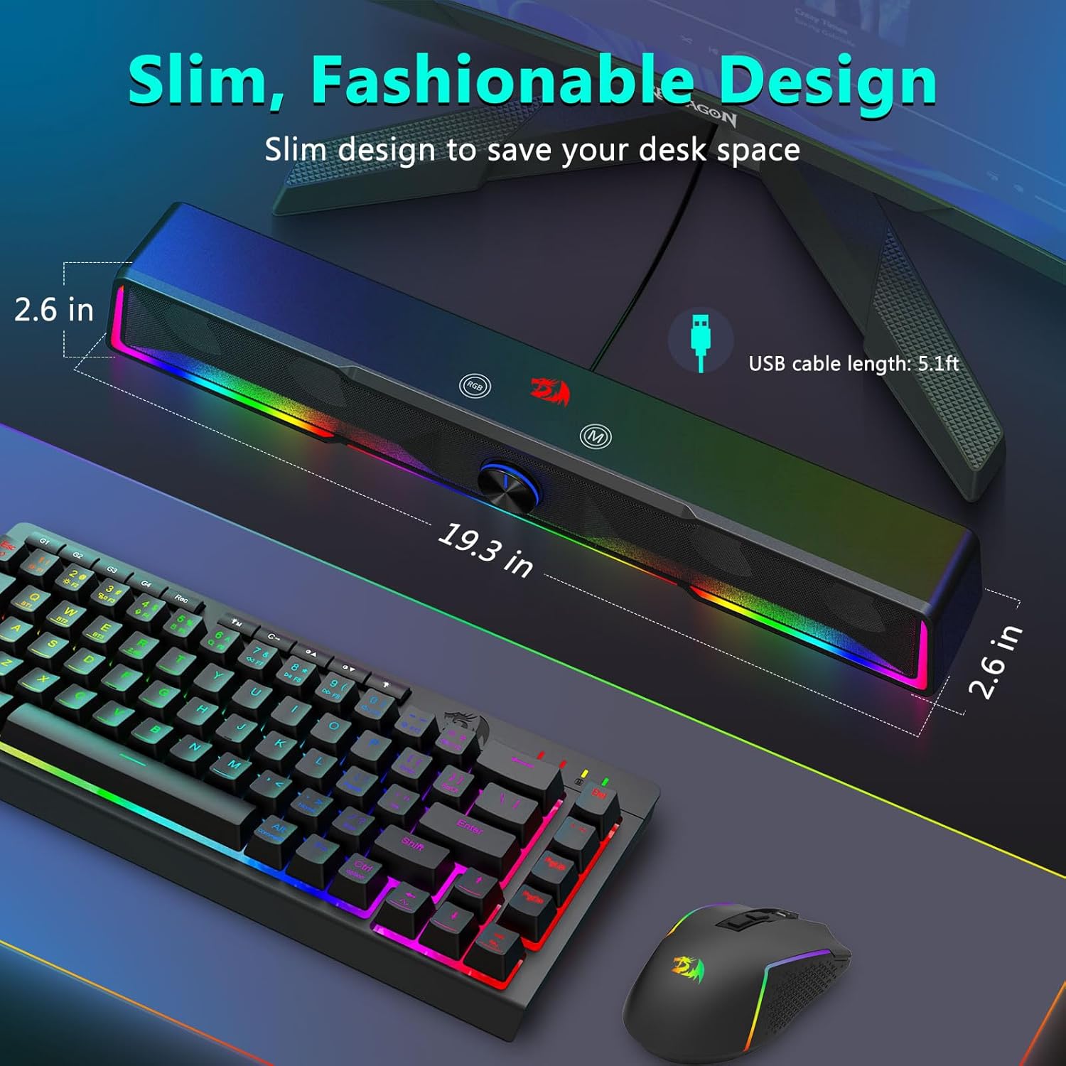Бул компакт дизайн таза жана уюшкан стол чөйрөсүн сактоого жардам берет, ошол эле учурда бай жана таасирдүү аудиону жеткирет.