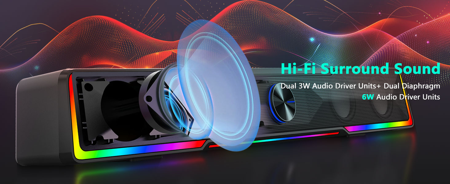 Күчтүү стерео драйверлер менен жабдылган Black GS516 Bluetooth/USB зымдуу туташуу Soundbar үнүнүн баскычы Компьютер динамиги таза вокал, деталдаштырылган орто диапазон жана жакшыртылган бас жооптору менен тең салмактуу үндү берет.