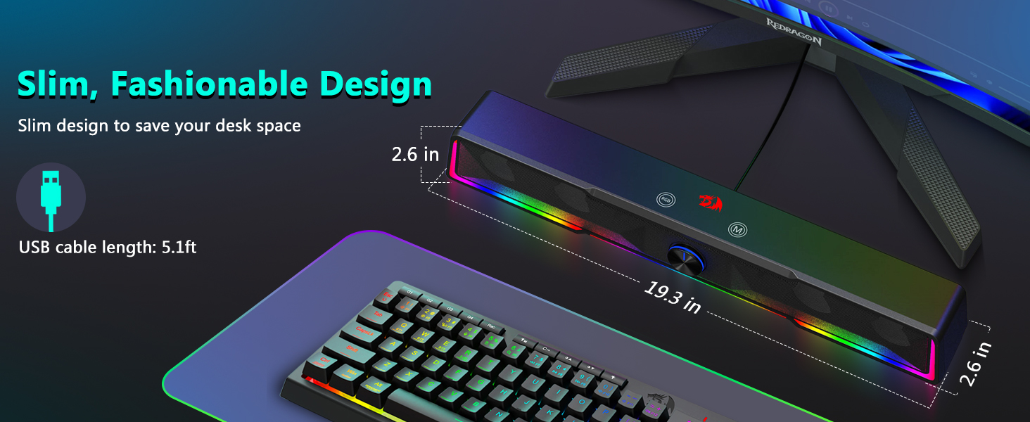 Монитордун эки тарабындагы чоң аянттарды ээлеген салттуу динамиктерден айырмаланып, Black GS516 Bluetooth/USB зымдуу туташуу үн панелинин үн көлөмү баскычы Компьютер динамиги көпчүлүк компьютер экрандарынын астына ыңгайлуу болгон ичке саундбар түзүмүн камтыйт.