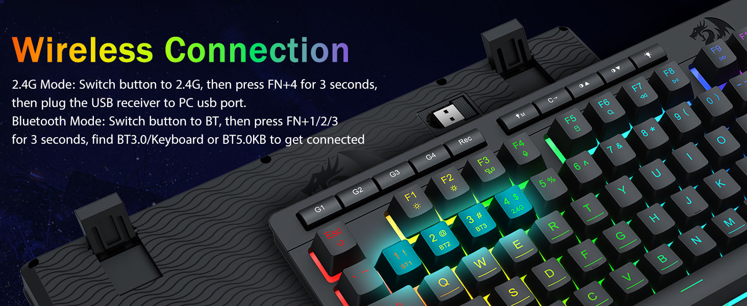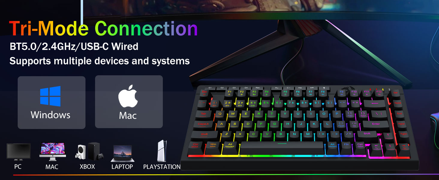 Tri-Mode Ардакчылдыгы жана Мульти-Түзмөк чеберчилиги- Bluetooth 5.0, 2.4ghz зымсыз, же USB-C зымдуу режимдеринин ортосунда бир аз убакытка (PC, Mac, таблеткалар, планшеттер, план, таблеткалар, пс / xbox).