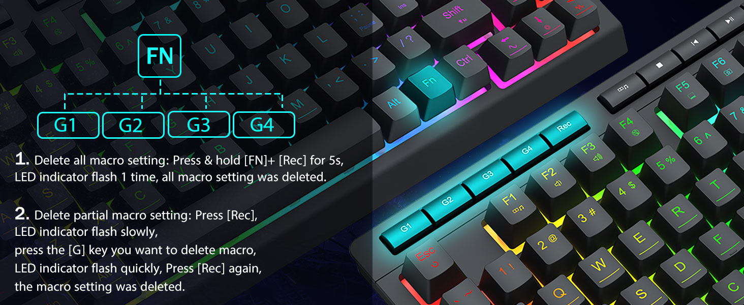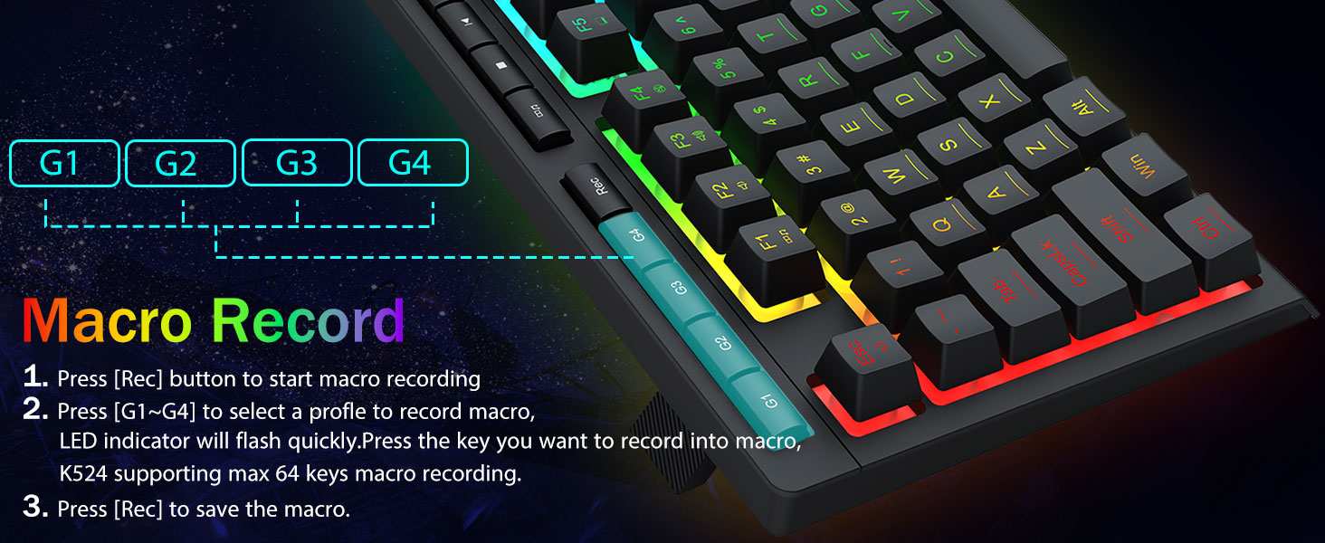 4 Macro Keys -4 Macro Keys (g1 ~ g4) Баскычтар оңдоого оңой жана ар кандай макросторду жасай алышат.