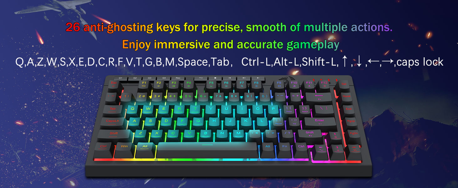 26 Анти-Арбак баскычтары жана атайын медиа көзөмөлү -26 ачкычты (баскычтар менен баскычтарды) тез жана так оюн үчүн бир эле учурда аткарууга уруксат берүү үчүн, сиз каалаган жол менен иш алып барууга уруксат берген Дедиттелген ММКны башкаруу элементтери ойнотууга, тыным жасоого жана мультимедияны клавиатурадан өткөрүп жиберүүгө уруксат берип, клубуңуз жылмакай жана үзгүлтүксүз болуп саналат.