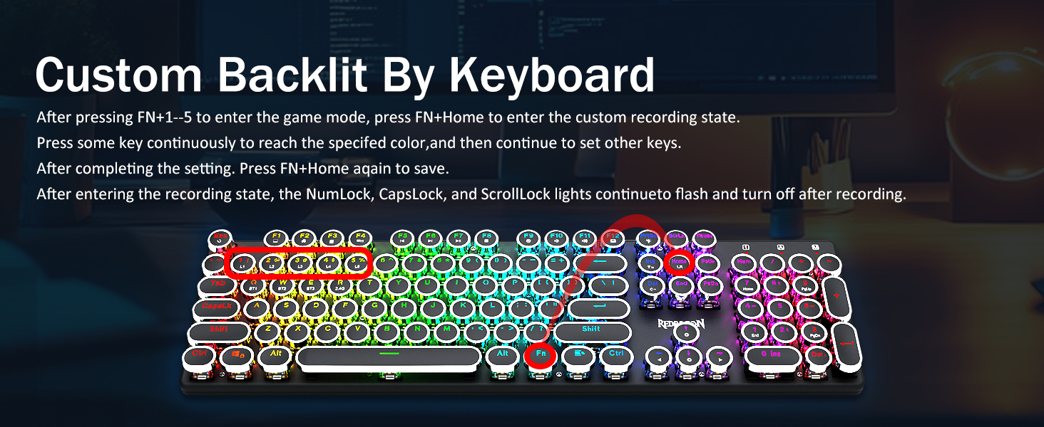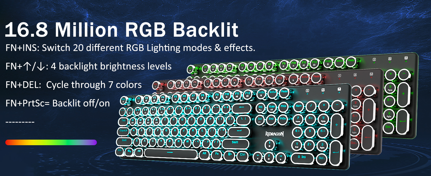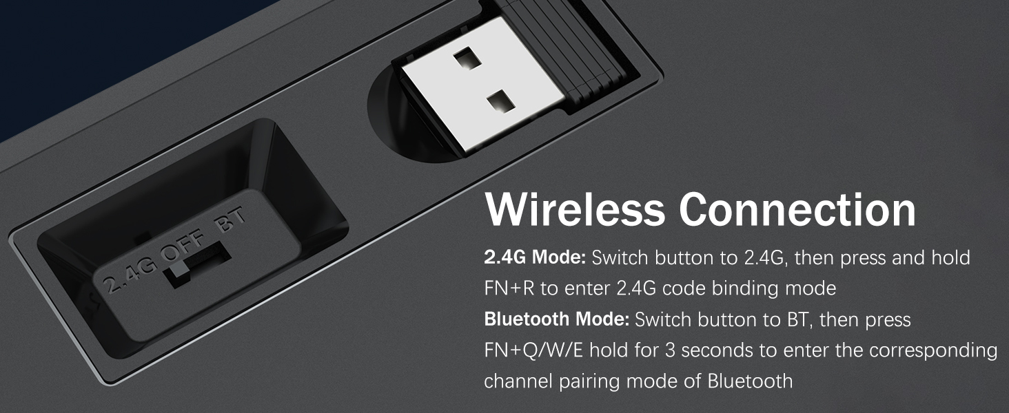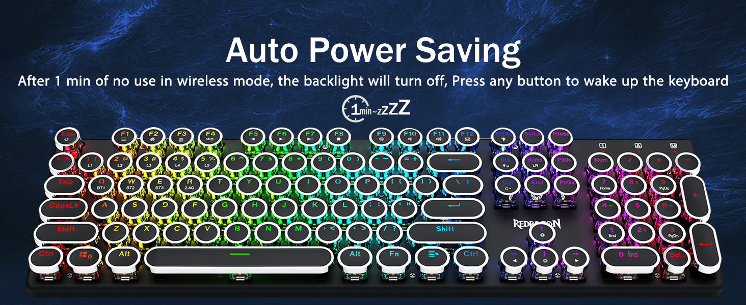 𝟯-𝗠𝗼𝗱𝗲 𝗖𝗼𝗻𝗻𝗲𝗰𝘁𝗶𝗼𝗻 -Redragon Innovative Tri-Modi туташуу технологиялары менен, USB-C Зымдуу, Bluetooth 5.0 / 3.0 & 2.4ghz зымсыз режимдер, колдонуучу тажрыйбасын бардык тармактардагы башка деңгээлге көтөрөт. Bluetooth режимине FN + Q / W баскычын басып, FN + R баскычын 2.4G режимине чейин басыңыз.