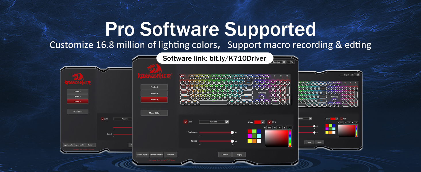 Чуангкуан Редрагон Кара K710 зымсыз машинка машинкасынын стилиндеги механикалык оюн баскычтопун өндүрүү үчүн адистештирилген адистештирилген Бул клавиатура Ghosteplay учурунда тактык учурунда тактык менен Ghosting технологиясы менен ретро шыктандырылган дизайнды жана 104-негизги анти-арбак технологиясы менен биригишет. Анын механикалык которгучтары сезимталдык тактиле жооп берет, ал эми RGB RGB жарыгы чөмүлтүлүүнү күчөтөт. Ар тараптуу Bluetooth, 2.4ghz зымсыз жана зымдуу байланыш, K710 бир нече түзмөккө адаптациялашат. Макрос жана жарык берүүчү эффекттер үчүн ыңгайлаштырылган программа тарабынан колдоого алынат, ал оюнчуларга жана адистерге да тиешелүү. Ишенимдүү заводдун булагы катары, Чуангкуан дүйнө жүзү боюнча дүң өнөктөштөрдүн дүң өнөктөштөрү үчүн эң катуу сапатты контролдоону, экономикалык жактан натыйжалуу жана ийкемдүү ылайыкташтырууга кепилдик берет.