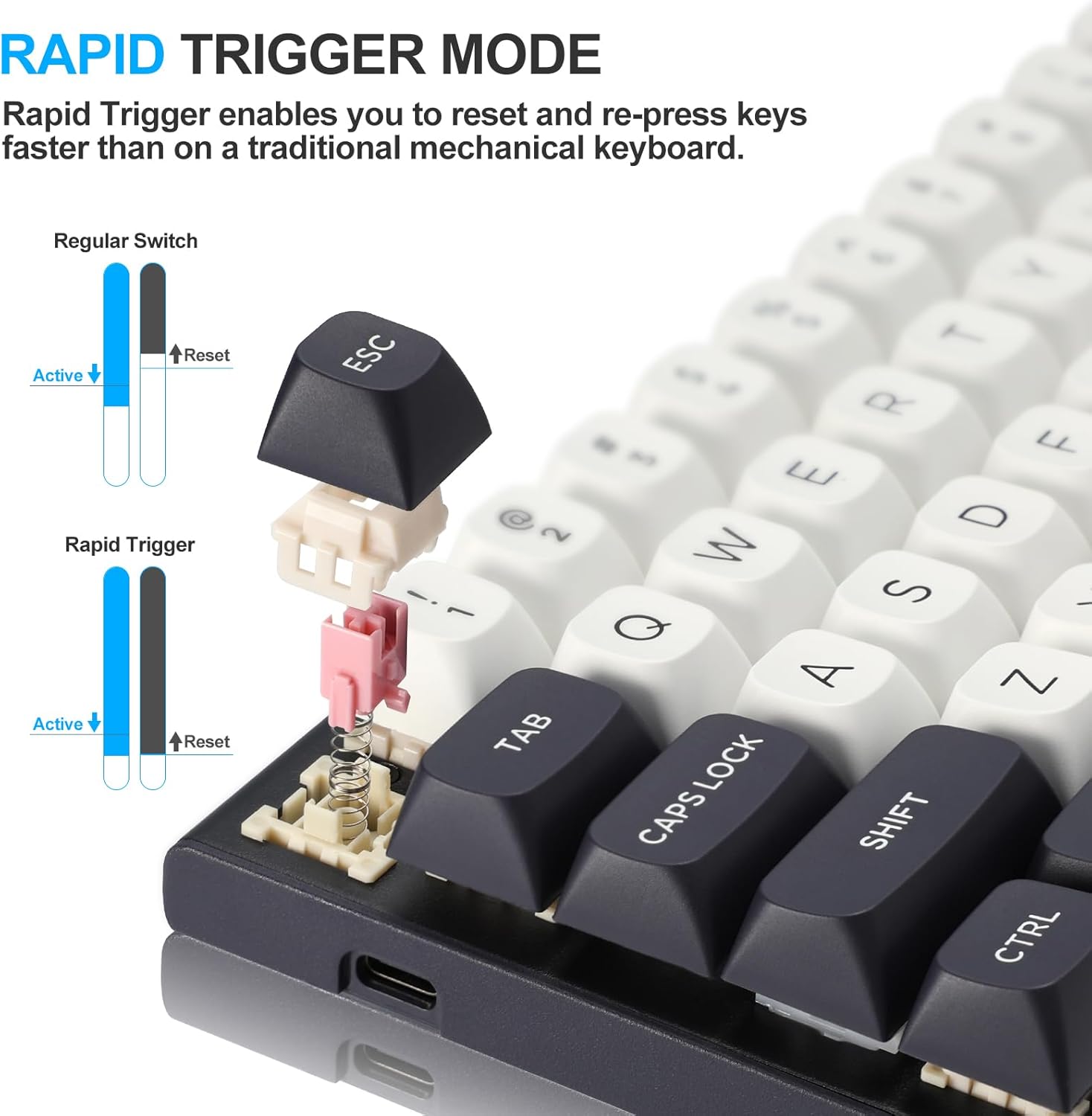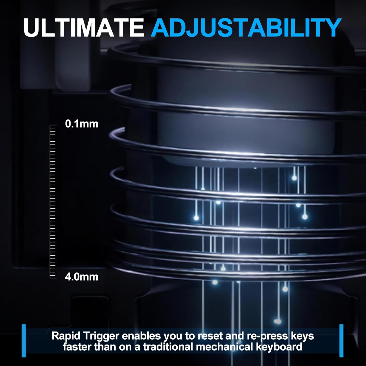 Rapid триггер функционалдуулугу тезирээк ачкычтарды баштапкы абалга келтирүү аркылуу жооп берүүнү жакшыртат, бул өзгөчө атаандаштык оюндар үчүн пайдалуу. Бул өзгөчөлүк оюнчуларга толук ачкыч саякатын күтпөстөн, кайталанган аракеттерди натыйжалуураак аткарууга мүмкүндүк берет.