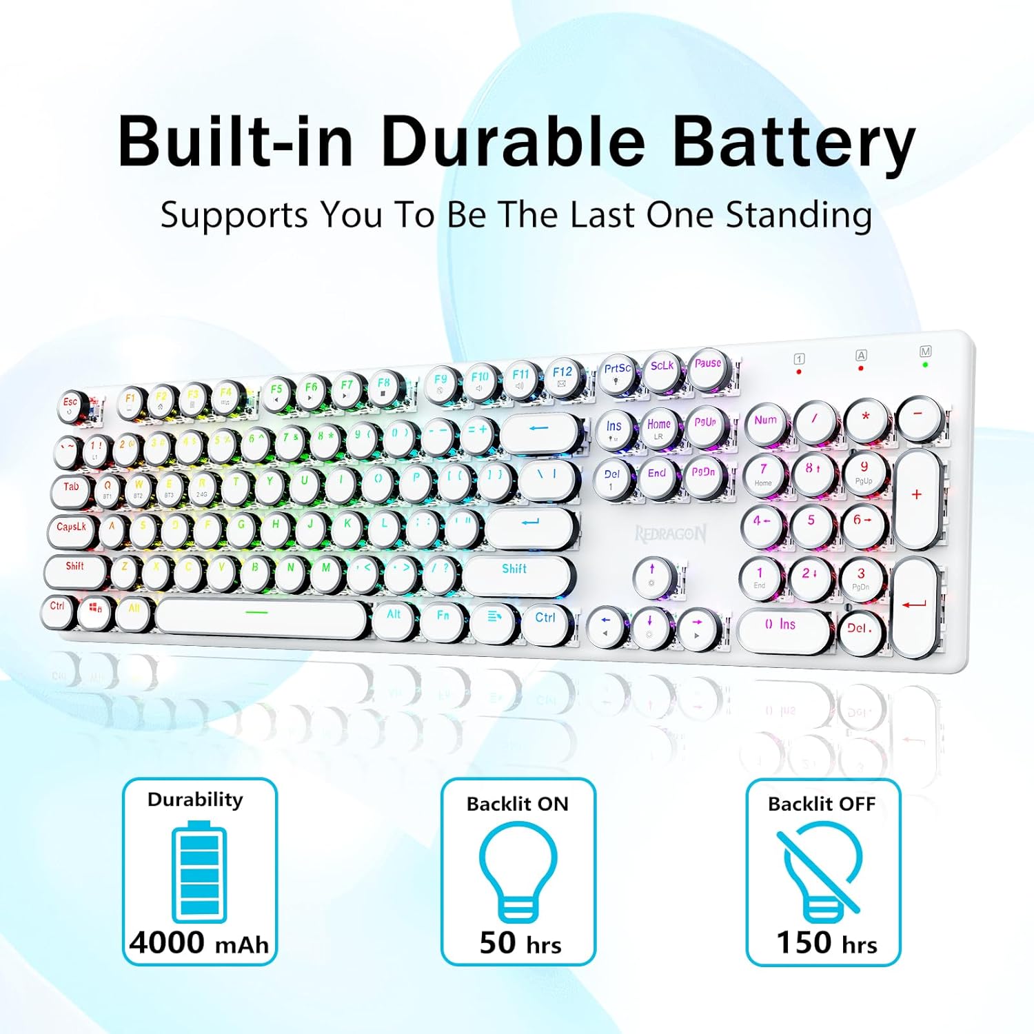 Чуангкуан, алдыңкы кытай өндүрүү, алдыңкы кытай өндүрүүчүсү, Redragon White K710 White K710 зымсыз машинка механикалык Gaming Meanical Gaming Meanical Gaming - 104 баскычы - Ретро дизайн жана заманбап оюндун натыйжалуулугу. Бул 104 баскычтоптун баскычтагы өзгөчөлүктөрү Три-Романын туташуусу (Bluetooth / 2.4Ghz / USB-C) Арбакка каршы технологиялар жана кесиптик программалык камсыздоону колдоо менен, ал оюнчулар жана типисттер үчүн өз ара жоопкерчиликти камсыз кылат. Бул баскычтоп түздөн-түз Чуангкандын фабрикасынан түздөн-түз бул баскычтоптун эң жогорку сапаттагы контролу жана кургатылган OEDM / ODM тарабынан бекемделген OEDM чечимдери менен шартталган дүң өнөктөштөрдүн өзгөчө маанисин сунуштайт.