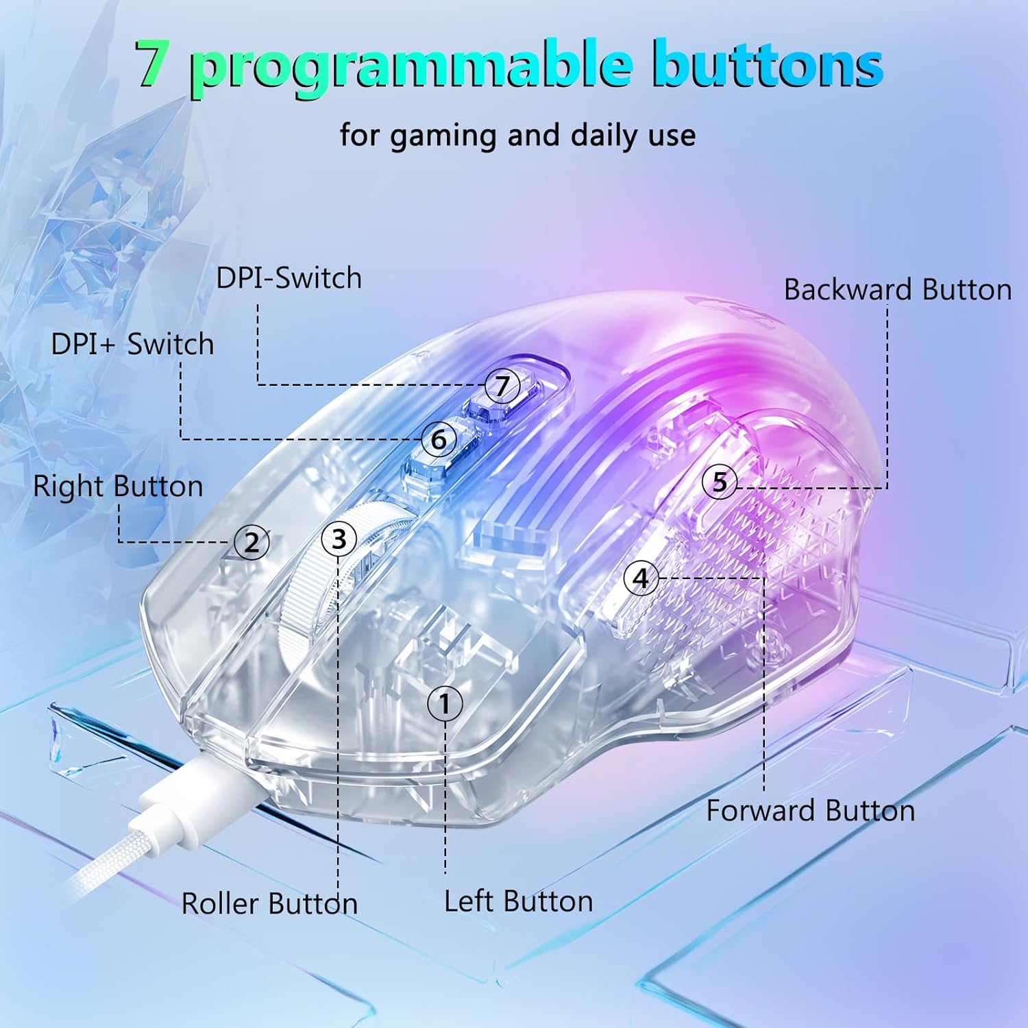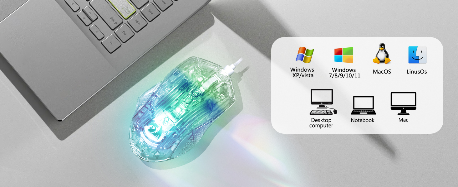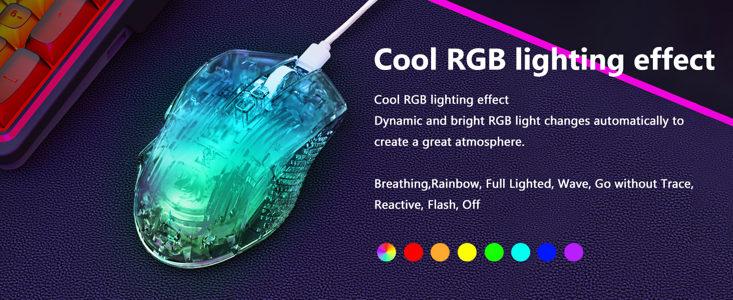 Чычканга сегиз RGB жарык эффектиси кирет, алар иштөөгө таасир этпестен визуалдык жагымдуулукту күчөтөт. Колдонуучулар өздөрүнүн жөндөөсүнө же жеке каалоосуна ылайык жарыктандыруу режимдерин алмаштыра алышат.