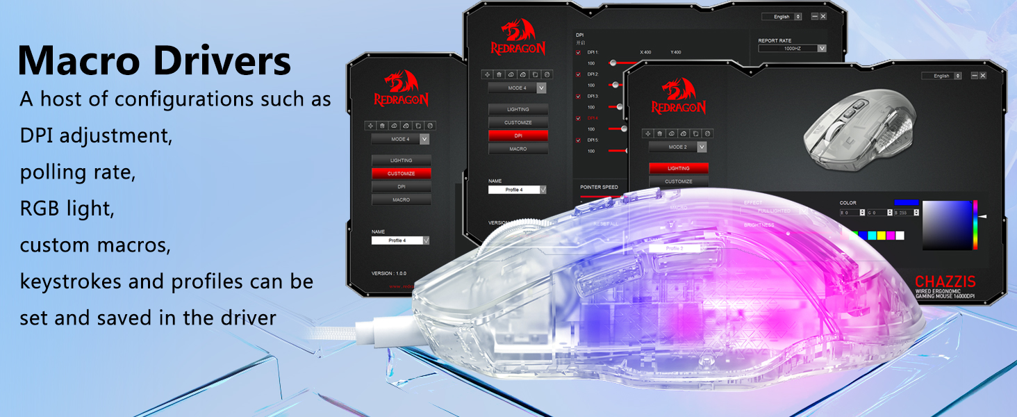 Жөнгө салынуучу DPI деңгээли колдонуучунун каалоосуна жараша ыңгайлаштырууга мүмкүндүк берип, аны ар кандай оюн жанрларына жана иш процесстерине ылайыктуу кылат.