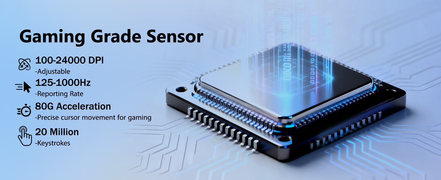 Чычкан 24 000 DPI чейин жетүүгө жөндөмдүү өнүккөн оптикалык сенсор менен жабдылган. Бул колдонуучуларга ар кандай сценарийлерге ылайык сезимталдыкты тууралоо мүмкүнчүлүгүн берет, оюндарда так максаттоодон баштап чоң экрандар боюнча курсордун ылдам кыймылына чейин.